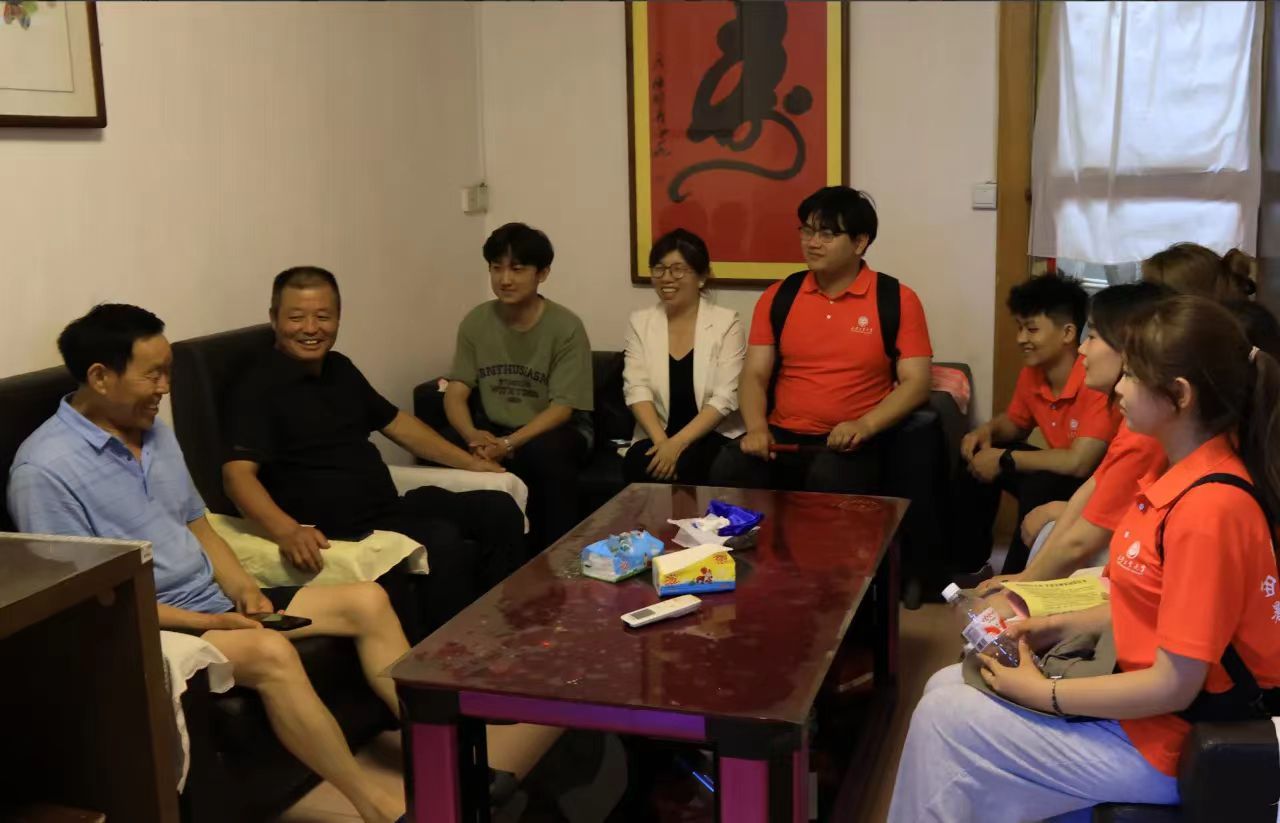 在陈村前村支书、老党员刘红信家中,实践队员们聆听老党员讲述峥嵘岁月的奋斗故事。队员们走街串巷,向村民发放保护野生动物宣传单,讲解生态保护知识;并为村民发放长征精神宣传手册,宣讲红色文化。最令人瞩目的是,队员们以"三农"为主题,顶着炎炎烈日,用画笔在墙上勾勒出一幅乡村振兴的壮美画卷,为美丽乡村建设增添亮色。