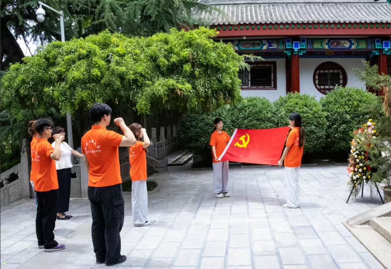 青山埋忠骨,热血铸丰碑。在庄严肃穆的杨虎城烈士陵园,实践队成员在纪念碑前重温入党誓词,誓言铿锵。杨娜娜老师讲授主题党课并通过影像资料,以杨虎城将军事迹阐释"信仰、忠诚、担当"的深刻内涵。