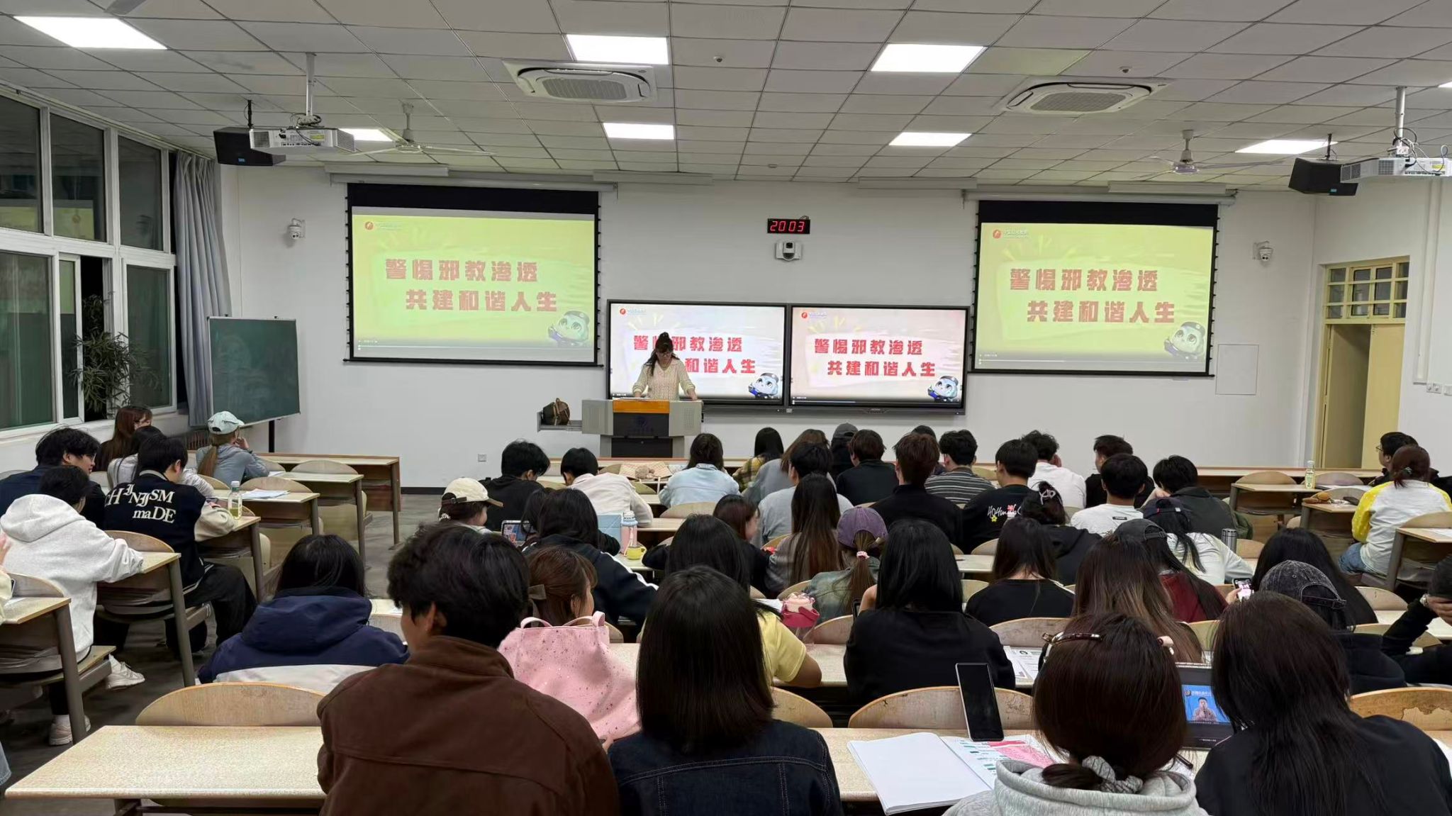 活动中,许金鑫组织学生以团小组形式参与“千万师生同上一堂国家安全教育课”线上学习,通过专家授课、案例解析,帮助学生掌握国家安全知识,明确维护国家安全的重要性。杨娜娜组织学生开展反邪教警示宣传,结合视频案例讲解邪教危害,引导学生远离、抵制邪教。各班级以党团主题班会为载体,通过知识问答、观看警示视频、交流讨论等形式丰富教育内容,强化教育效果。此次活动筑牢了学生国家安全思想防线,为营造安全稳定的校园环境奠定基础。