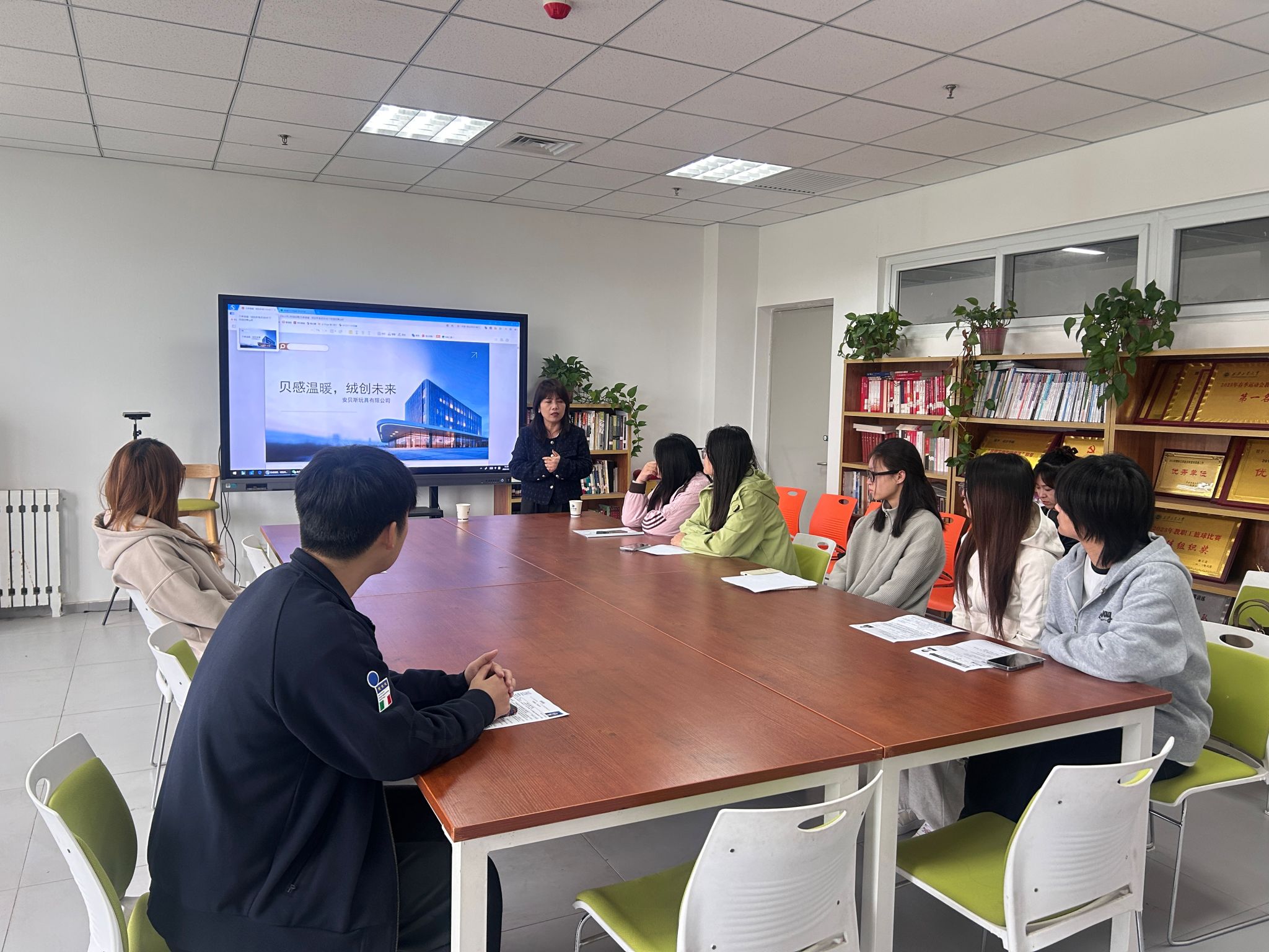 4月21日,扬州安贝斯玩具有限公司研发部经理范楷携人力资源部经理施巧燕、HR主管高静雯走进黑料不打烊 举办专场招聘会。20位毕业班学生参加此次招聘会,会议由辅导员洪涛主持。