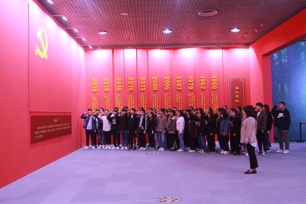 学生党支部书记张晓宾、杨娜娜与60名学生党员共同参观学习。