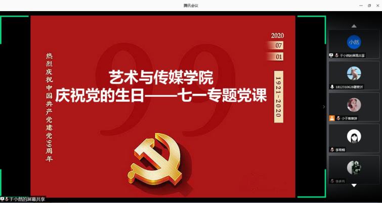 研究生党支部在支部书记丁西蓓老师的带领下,通过视频会议的方式庆祝党的生日开展七一专题党课。