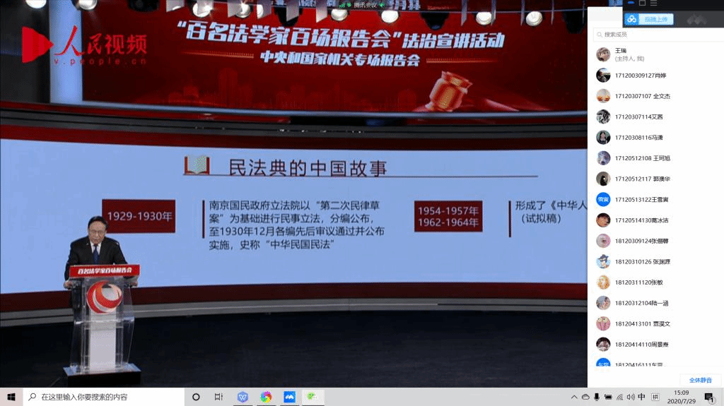 第一党支部利用主题党日活动时间,组织全体党员进行线上集中学习,本次学习主要内容为“百名法学家百场报告会”和《中华人民共和国民法典》(以下简称民法典)。