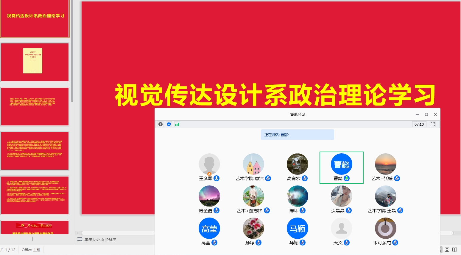 2020年9月29日,视觉传达设计系通过腾讯会议召开了政治理论学习会议,会议由系主任曹懿主持,全系教师参会。