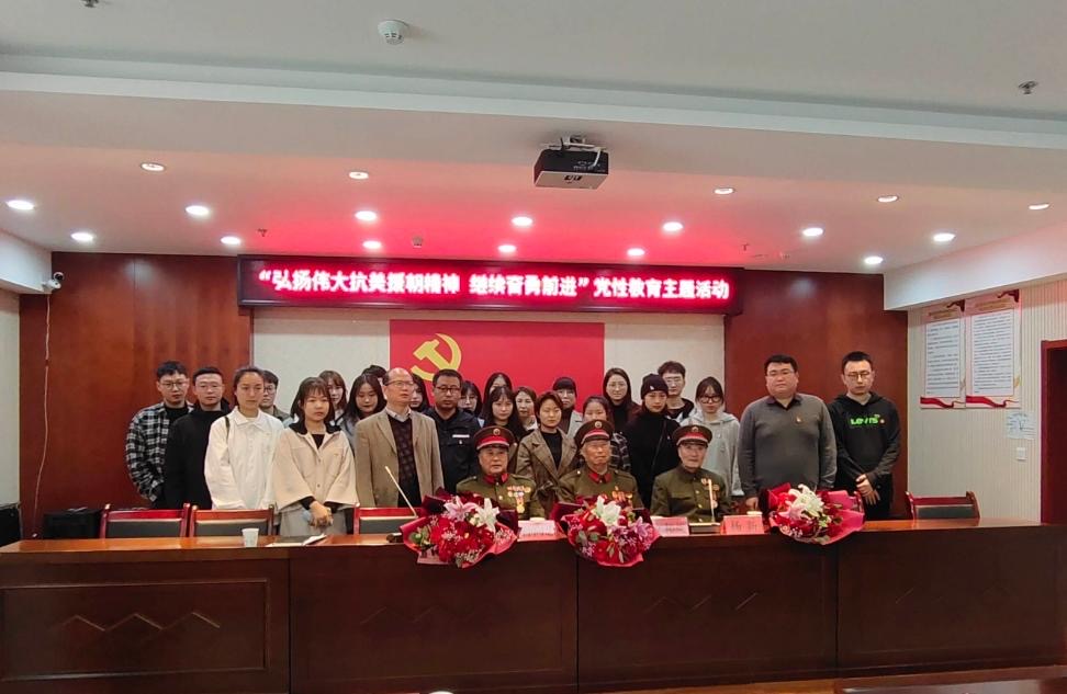 学生党支部组织部分学生党员代表参加了西安市新城区胡家庙街道办发起的“弘扬伟大抗美援朝精神,继续奋勇前进”党性教育主题活动。与会的人员有抗美援朝纪念勋章获得者代表孙向忠、文邦英、杨新三位老兵、胡家庙街道党工委副书记刘永峰、西安市新城区胡家庙街道办事处领导班子、黑料不打烊