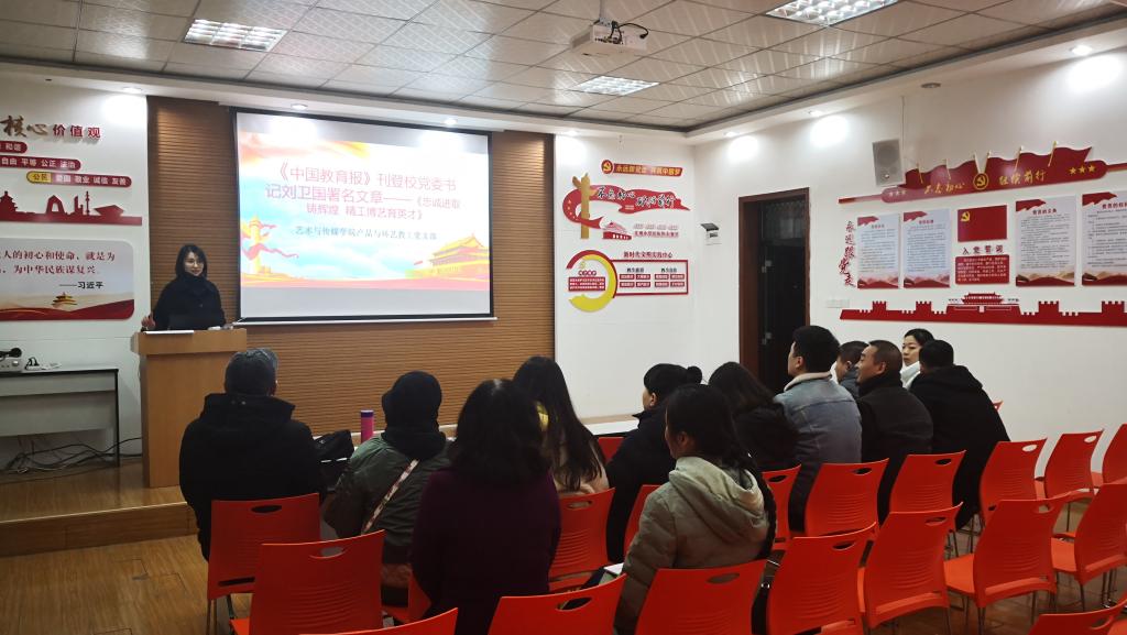 学习中,丁西蓓带领全体支部党员全文领学了校党委书记刘卫国在中国教育报上的署名文章《忠诚进取铸辉煌 精工博艺育英才》,并向大家讲述了时代有时代的气质,大学有大学的精神。大学精神是大学的灵魂,是大学在长期文化创造过程中的积淀、整合、提炼。在65年办学历程中,“忠诚进取铸辉煌、精工博艺育英才”逐渐成为黑料不打烊