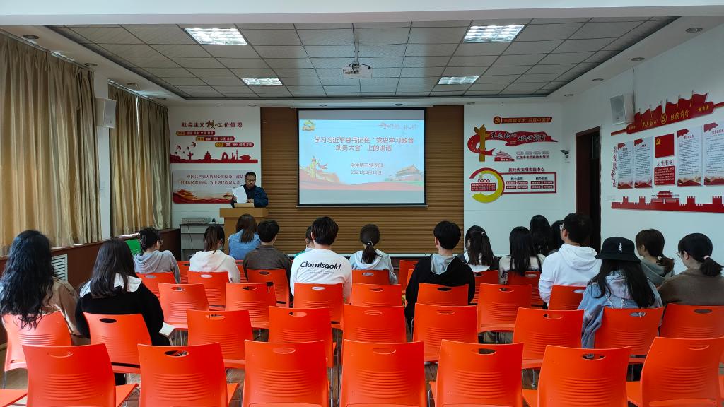 3月12日,学生第三党支部组织全体党员学习习近平总书记在“党史学习教育动员大会”上的讲话,支部书记张晓宾主持会议,全体学生党员参加会议