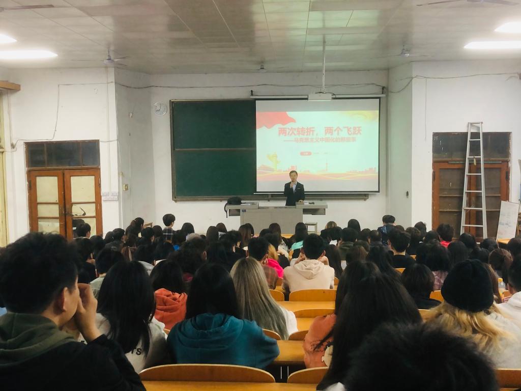 会上,韩霄老师以“两次转折 两个飞跃”为主题,分别对遵义会议、毛泽东思想、十一届三中全会、邓小平理论展开介绍,为同学们带来了一场生动、深刻的马克思主义中国化的主题思想教育。100年风雨兼程,思想不断解放,国家不断富强振兴。新时代下的新中国将会以更加主动的姿态加入到世界文化交流中去。会上,同学们就学习的内容和韩老师进行交流活动,并在会后,继续开展团支部主题团日活动,继续进行深入学习。