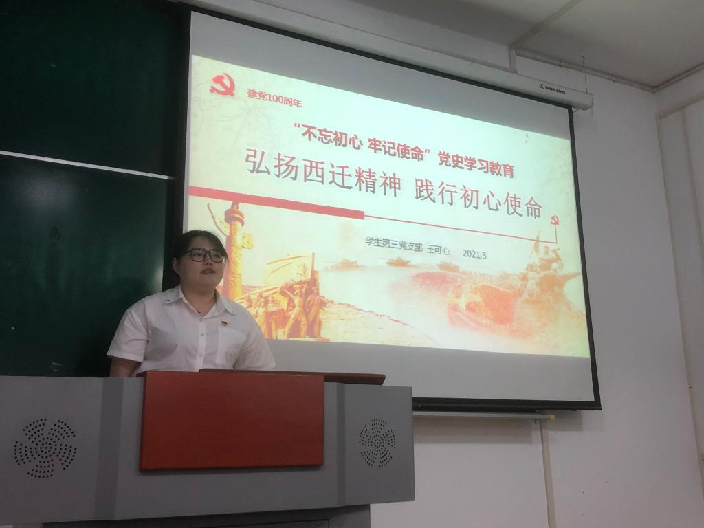 首先,张晓宾老师向大家介绍了举办本次微党课比赛的意义,并提醒同学们认真聆听参赛选手的讲授内容,深刻感受党史知识的熏陶。随后,关琪心、王可心、董易豪、杨豪、张渊源、李倩囡、孙意鑫、侯佳佳、逯芝荷9位学生党员分别以长征精神、红船精神、五四运动精神、抗美援朝精神、西迁精神、重温入党誓词、新中国第一条铁路为题,将党的理论知识与鲜活的事例、生动的语言、真实的情感相结合,带领各位党员更加明确了我们党的每一段革命历史,都是一部理想信念的生动教材,青年党员应高举革命先辈的精神火炬,用奋斗镌刻青春,以担当创造历史。