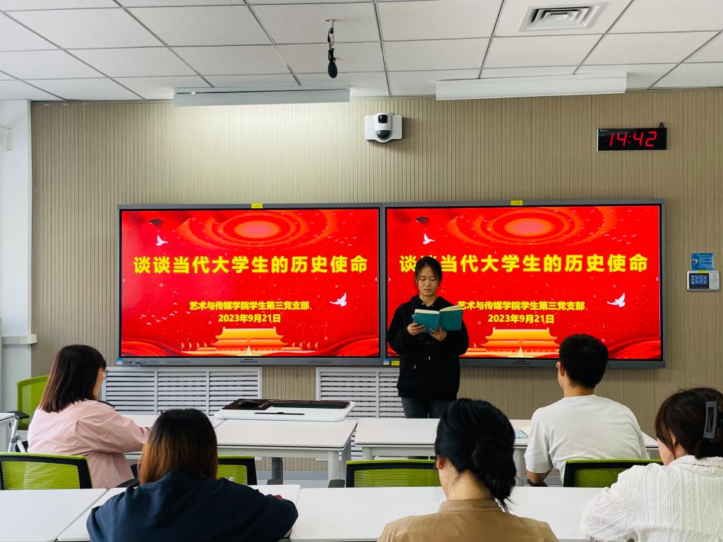 第一环节由各党支部分别组织发展对象开展小组研讨,大家围绕“学习党的二十大精神体会”和“谈谈当代大学生的历史使命”两个主题进行,小组研讨由各党支部书记主持。