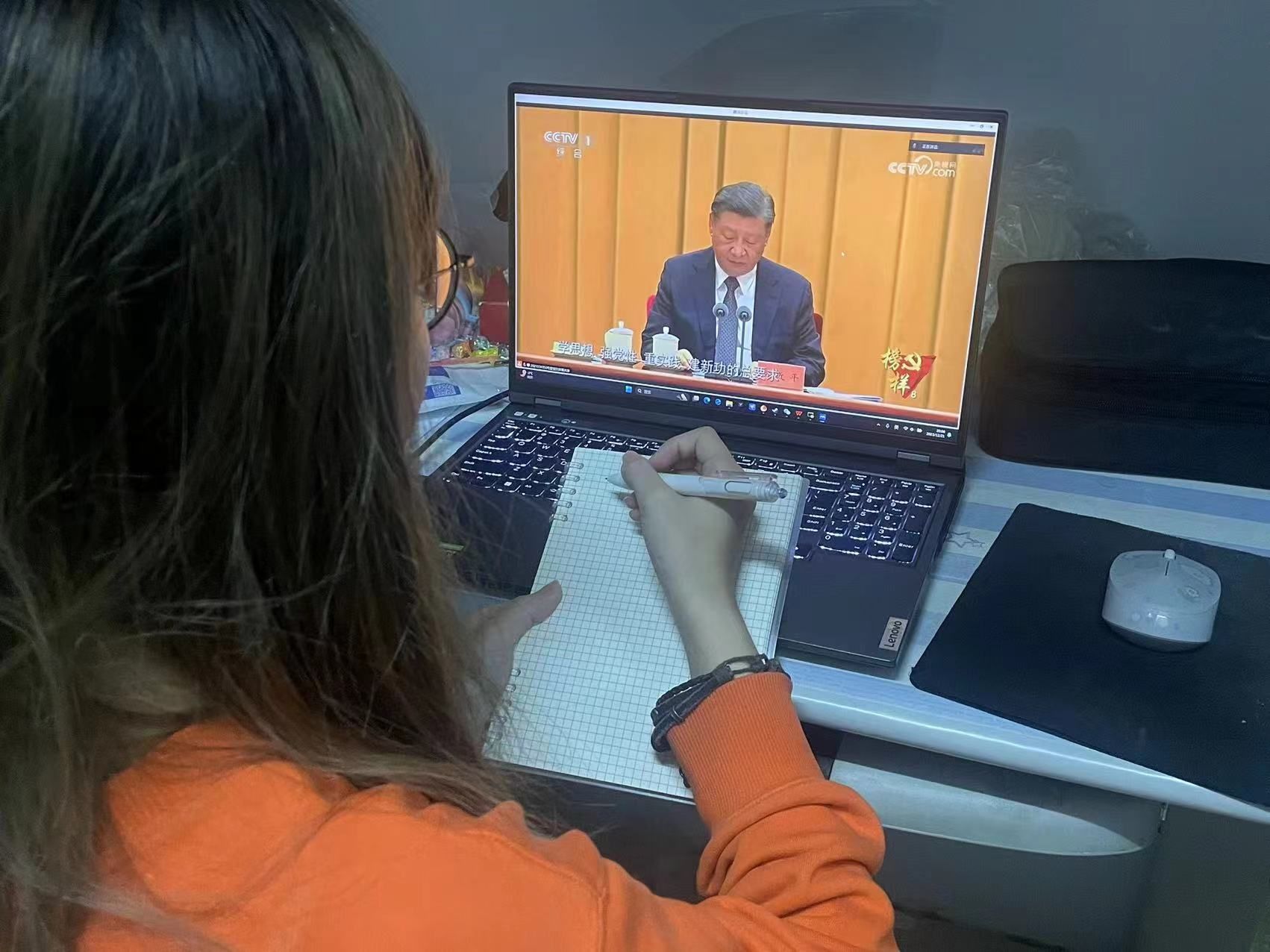 学生第三党支部周佳訸说:“我们将自觉向榜样看齐,以担当实干践行初心使命,以感恩奋进、拼搏、赶超的奋斗姿态勇于前进。”