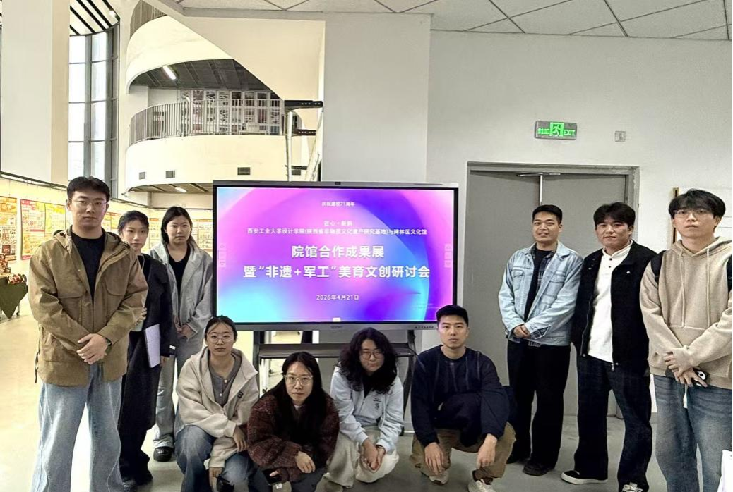 (陕西省非物质文化遗产研究基地)与碑林区文化馆联合举办的院馆合作成果展暨“非遗+军工”美育文创研讨会。