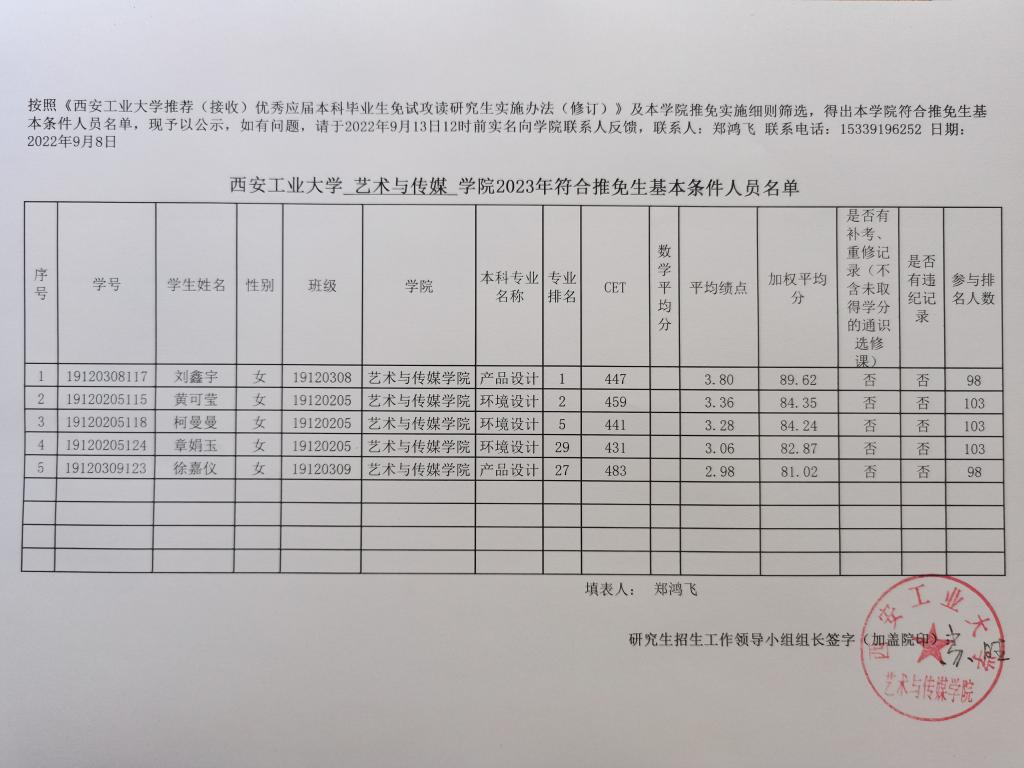(公示)黑料不打烊 2023年--艺术与传媒黑料不打烊 符合推免生基本条件人员名单