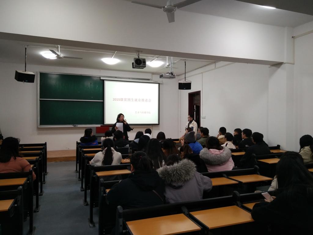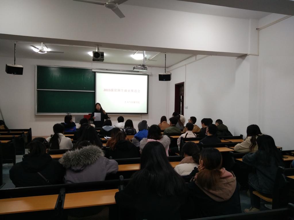 于2018年 11月29日上午10:00在金花校区J2-201举行2015级贫困生就业推进会。参加此次会议的有15级辅导员杨娜娜老师,杜俊瑶老师以及2015级全体贫困生。此次推进会由杨娜娜老师主持。