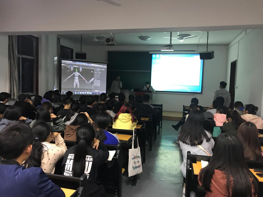 讲座现场马超老师旁征博引,娓娓道来,从游戏的发展史入手,着重介绍了游戏发展的重要阶段,同时对游戏项目案例进行实际演示,为学生讲解了绘画技法和游戏制作流程,最后从游戏行业的认知方面系统的阐述了游戏行业的发展现状和趋势,并且为学生以后就业方向提供了指导,讲座现场气氛诙谐幽默,内容丰富。