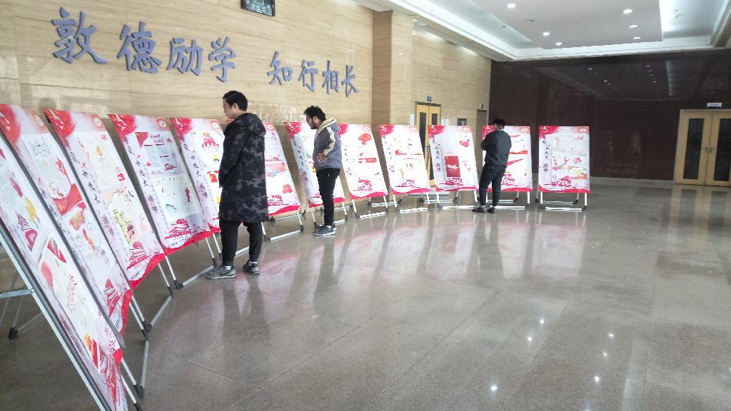 12月底至1月初,获奖的优秀作品在未央校区图书馆报告厅东门进行了展出,获得全校师生的广泛好评,也极大的宣传了十九大精神。