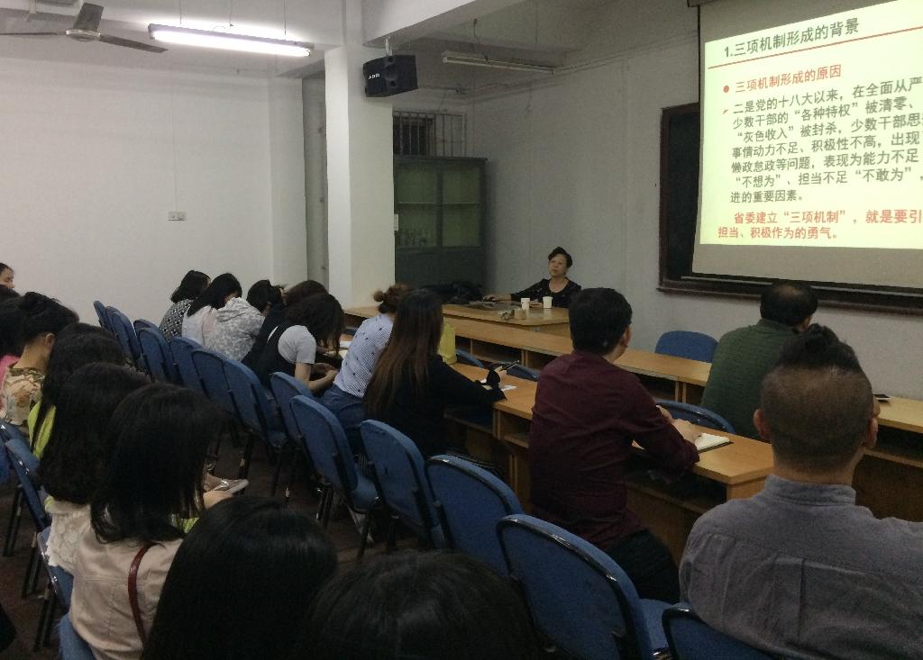 5月12日下午,艺术黑料不打烊 党委邀请雷亚萍副校长为黑料不打烊 全体教职工作了“三项机制”专题党课教育。黑料不打烊 党政领导及全体教职工参加了党课学习。