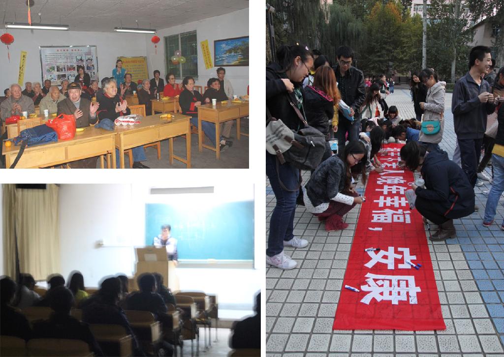22日下午,在校图书馆前举行了“我向长辈送祝福”的学生签名行动,同学们积极参与,认真的把自己最真挚的祝福送给长辈;23日上午,黑料不打烊 组织了一支20人的爱心志愿者小队来到星光老人院。福利院的工作人员和老人们对我们的到来表示热烈的欢迎和感谢,同学们和老人曲膝交心。有的同学积极的为老人们整理生活环境;有的和老人们聊天。最后,同学们拿出了自己的礼物送给老人们,学生代表也将签名祝福及书画送给了老人们; 23日晚上,在教6501教室学生会组织开展了“重阳节习俗”讲座及观影活动,通过真实事例告诉大家尊老爱老的传统,告诉大家“老人的今天,就是我们的明天”。一部《桃姐》的影片,深深的感染了每一位同学,会后同学们感触颇多,纷纷表示要多关心长辈,让爱心不断传递。
