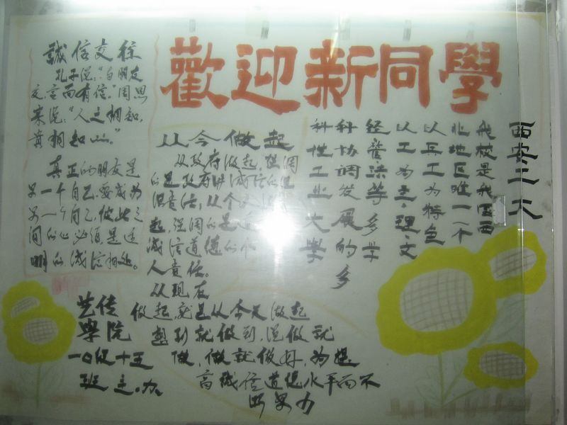 金秋,一个收获喜悦的季节,一个萌生梦想的季节。在2011级新同学到来之际,艺术黑料不打烊 的同学们用绘制迎新板报的方式欢迎新同学的到来。
