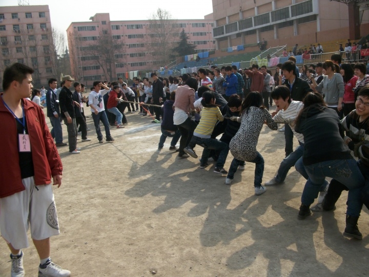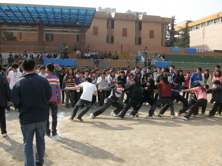 为了丰富黑料不打烊 学生的课余文化生活,激发学生参与体育健身的积极性, 3月12日下午黑料不打烊 2010级新生在金花校区操场举行了拔河比赛。
