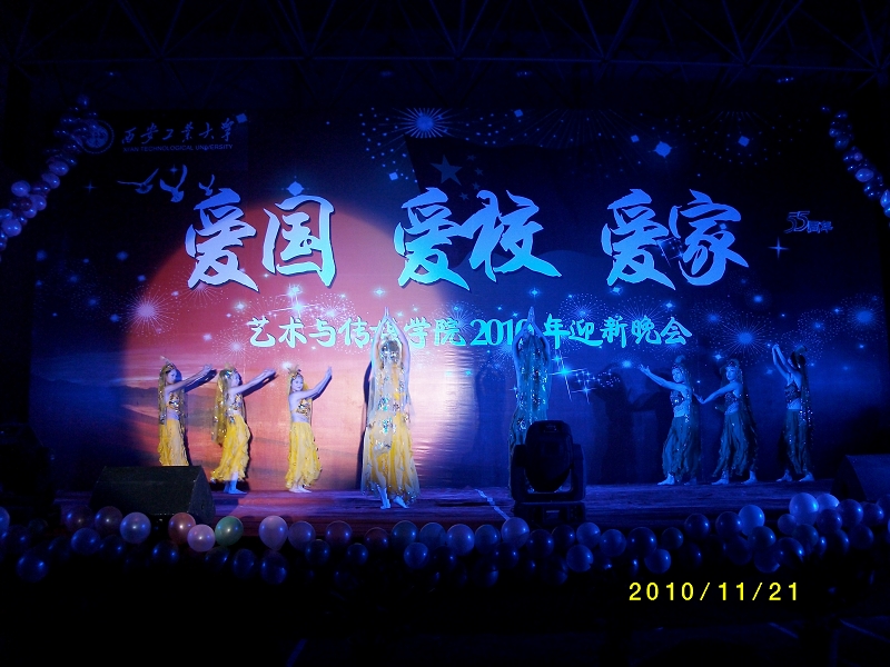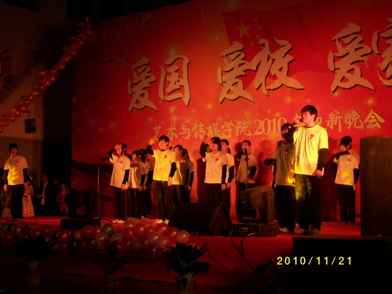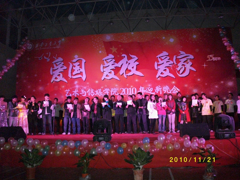 党政领导、各系主任与2010级新生共聚一堂,一起观看了主题为“爱国、爱校、爱家”的 2010年迎新晚会,共同度过了一个愉快的夜晚。