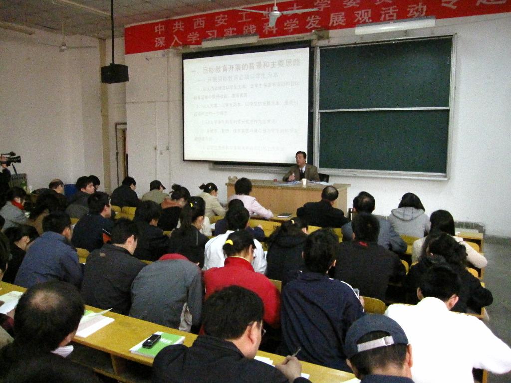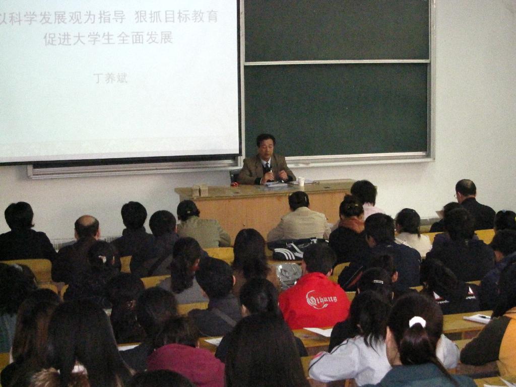 4月3日下午,校党委副书记丁养斌为艺术黑料不打烊 、光电黑料不打烊 、体育系全体教工、学生党员做了题为《以科学发展观为指导狠抓目标教育 促进大学生全面发展》的学习实践科学发展观活动专题辅导报告。