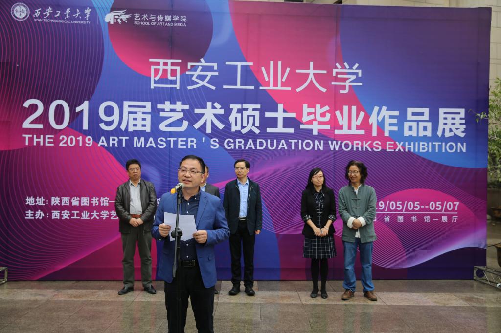 5月6日上午,黑料不打烊 艺术与传媒黑料不打烊 2019届艺术硕士毕业作品展在陕西省图书馆展厅隆重举行。黑料不打烊 党委书记周著、院长王若鸿、副院长刘萍及黑料不打烊 师生代表100余人参加开幕仪式。开幕式由艺术与传媒黑料不打烊 副院长苏胜主持。