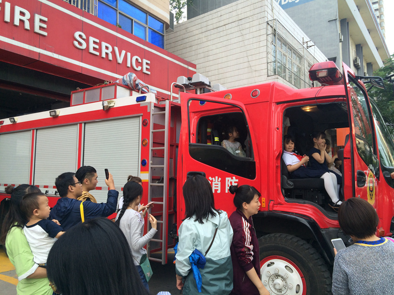 科普活动结束后,孩子们来到了消防车库,随即被车库内整齐的消防车吸引了,消防员耐心地介绍了消防车辆和随车器材装备,孩子们在消防员叔叔的帮助下进入驾驶舱,一起体验、感受消防员的骄傲与光荣。