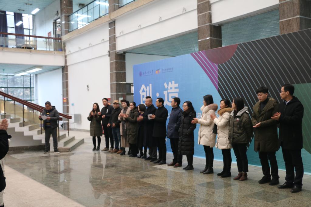 副院长苏胜、数字媒体艺术系主任祝瑜、产品设计专业全体老师以及各年级学生代表100余人参加了开幕仪式。开幕式由产品设计系李源老师主持。