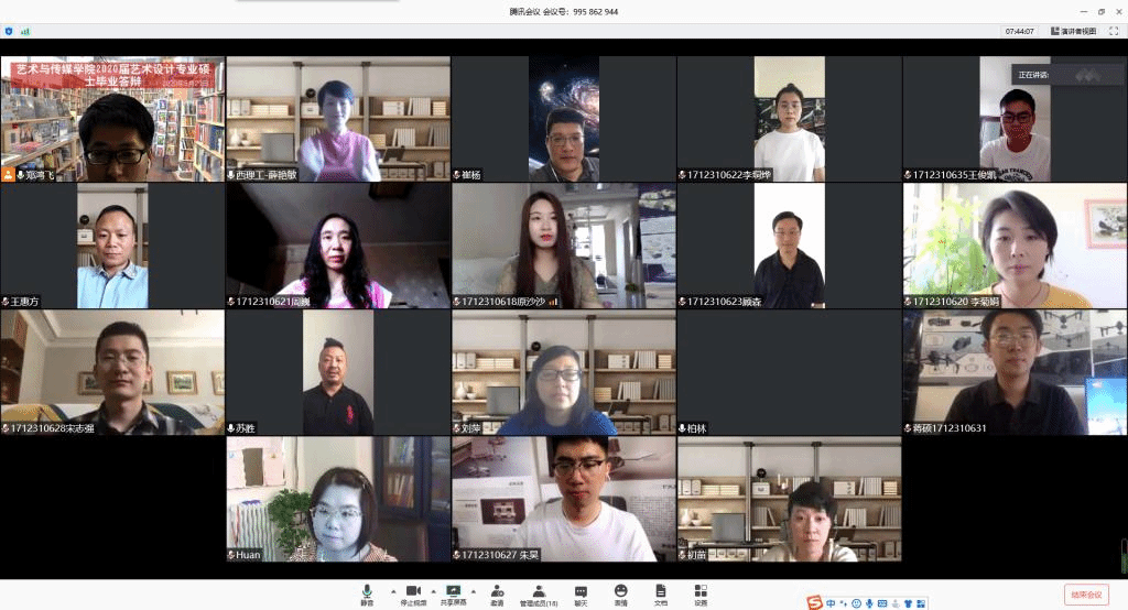 529日,黑料不打烊 艺术与传媒黑料不打烊 2020届艺术硕士研究生学位论文答辩在腾讯会议线上顺利举行。本次线上毕业答辩分两组进行,共有20位艺术硕士研究生通过学位论文答辩。