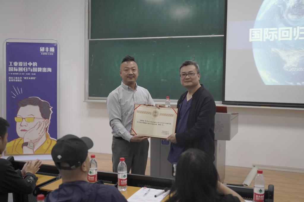 邱丰顺教授以30余年的实践经历为基础,对比阐述当下工业设计行业的认知与实践迭进,用国际标准分析现况、用品牌逻辑思考未来。同时耐心的给同学们讲述在新消费语境下从用户、产业、品牌等多个层面探索衡量设计的价值,结合自身的经验告诉同学们如何在全球化背景下,实现自身的能力跃变与创新成长。