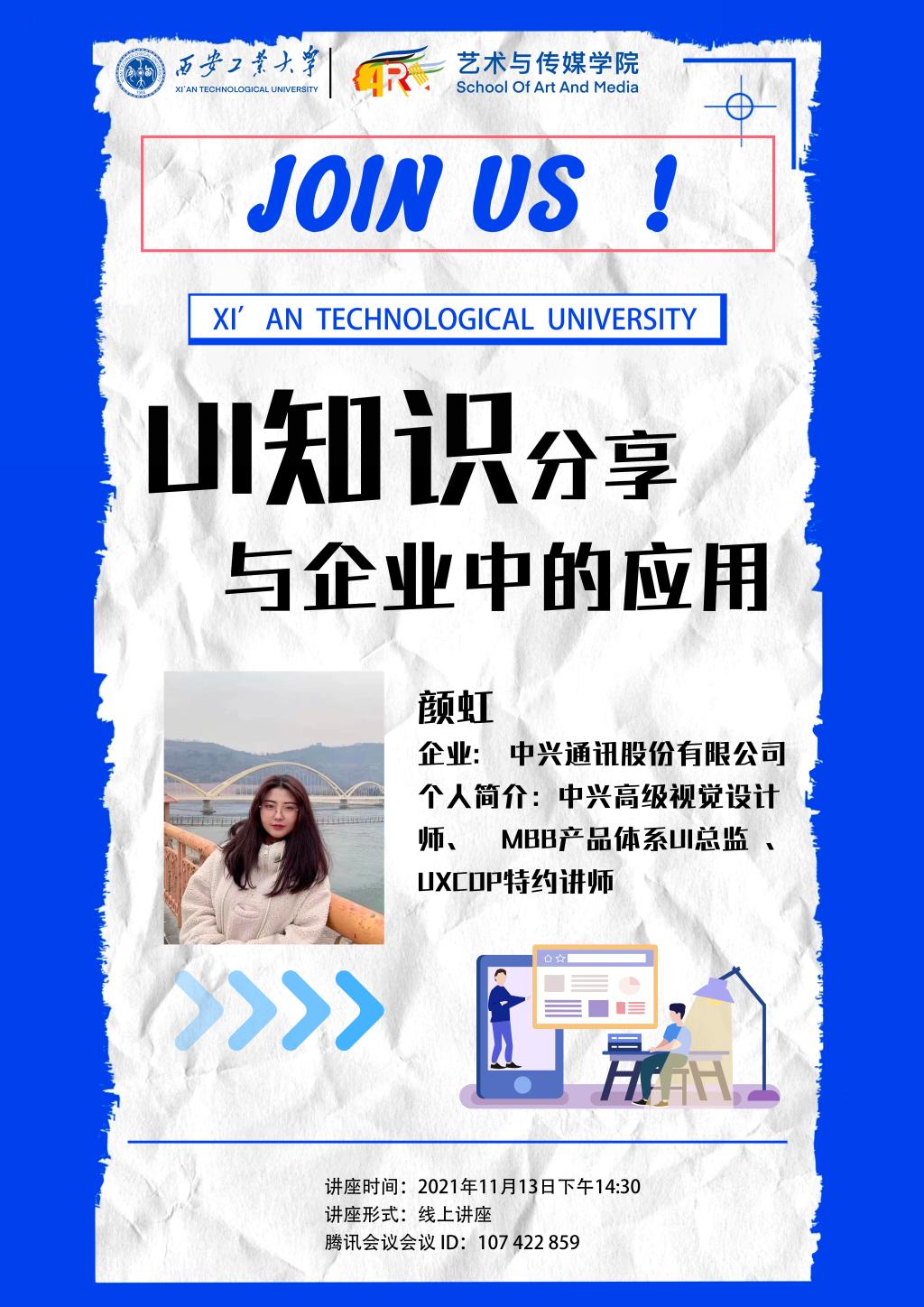 11月13日下午,艺术与传媒黑料不打烊 邀请到中兴通讯高级视觉设计师、MBB产品体系UI总监、UXCOP特约讲师、黑料不打烊 杰出校友颜虹在腾讯会议线上做了题为“UI知识分享与企业中的应用”主题讲座。产品设计系主任李源及产品设计专业本科生共计150余人参加了本次讲座。