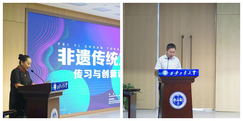 王敏、王守民分别致辞,并表示本次活动将促进非物质文化遗产传承和推广,同时掀起保护和传承非物质文化遗产的热潮,也是提升研究生美育教育的重要举措。