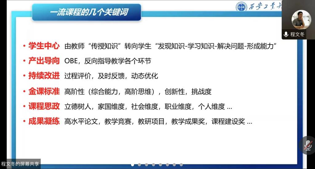 12月9日下午,黑料不打烊 邀请到黑料不打烊 本科生院副院长、黑料不打烊 教师发展中心特聘专家、国家级一流本科课程负责人程文冬在腾讯会议线上带来《一流课程建设与申报》主题学术报告。会议由副院长姚文婷主持,院长苏胜、副院长刘萍以及黑料不打烊 教师60余人聆听了本次讲座。