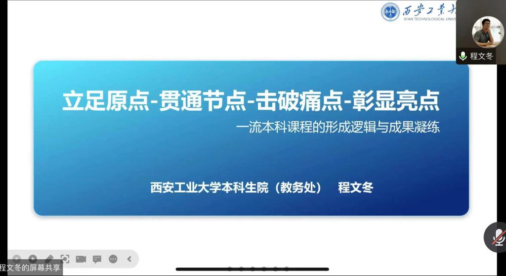 程文冬结合自己多年的教学经验,就一流本科课程的形成逻辑与成果凝练及如何更好开展一流课程教学进行了全面讲解。程文冬还向与会教师分享了自己申报国家级一流课程的经验,就申报过程中应注意的细节等内容一一讲解。