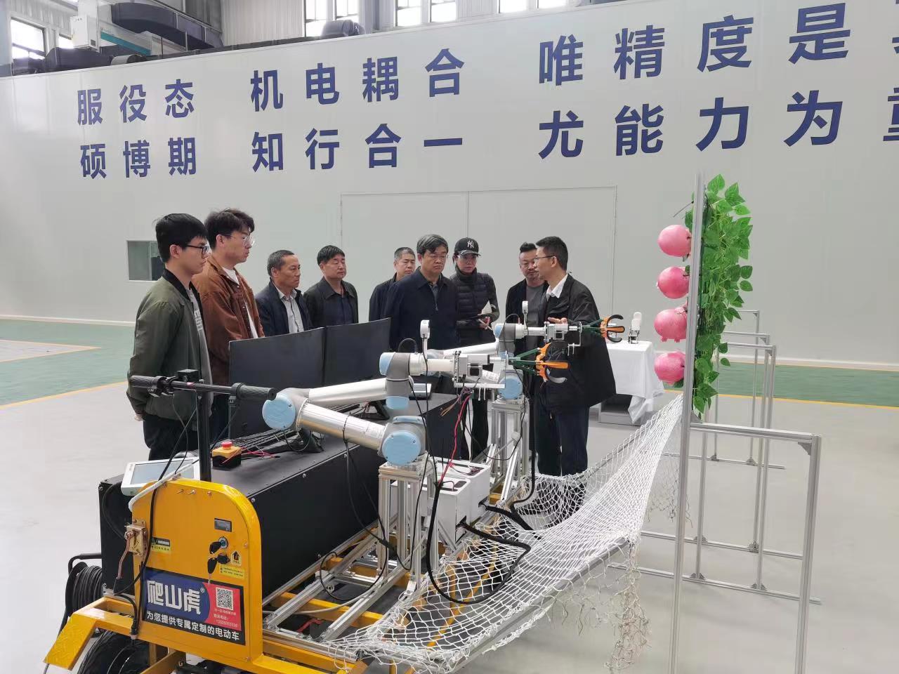 智能机器人联合实验室、机械工程实验室。重点考察了石榴采摘机、核桃破壳机等林果机械设备研究成果,详细了解了黑料不打烊