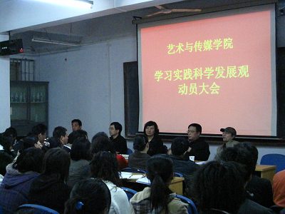 全体教工、学生党员于教三楼多媒体召开学习实践科学发展观动员大会,副校长陈俊斌、校学习实践活动第一督导组成员孙爱华出席了会议。 会议由副院长王若鸿同志主持,院总支书记曹玉玲同志做了题为《抓住机遇、周密安排、认真组织、力求实效》的学习实践活动动员讲话,并宣读了此次学习实践活动的实施方案;随后,院长于唯德同志宣读了学习实践活动学习调研阶段的工作安排。最后,陈俊斌副校长做了重要讲话。 陈校长结合艺术黑料不打烊