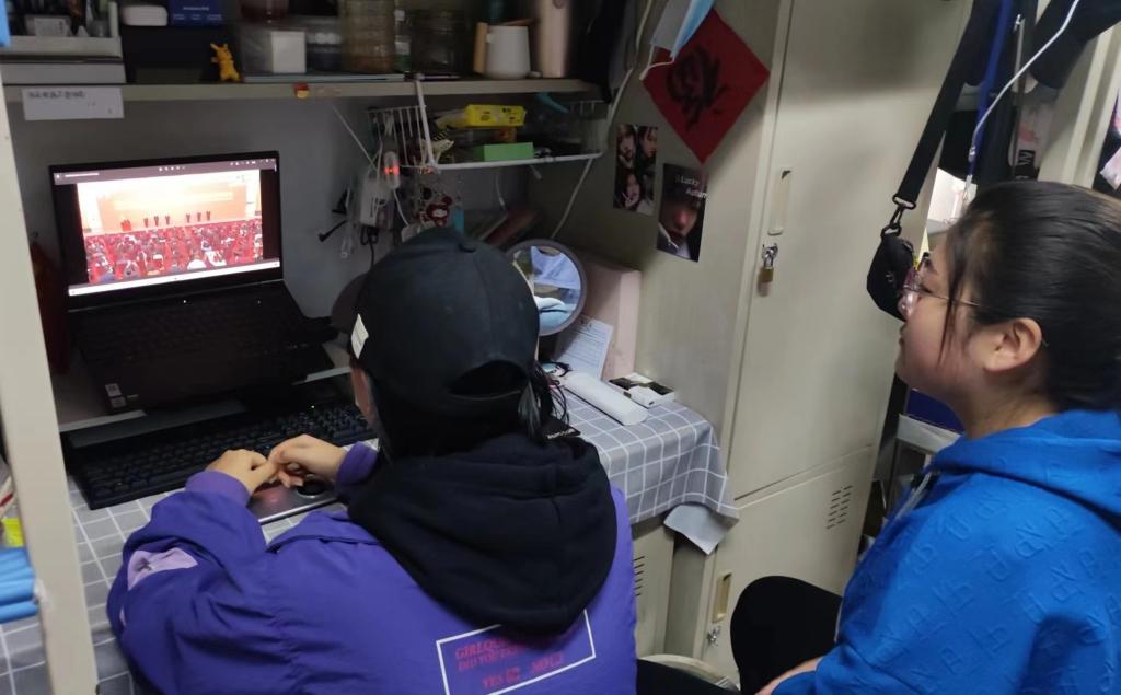 10月23日,学生第三党支部组织观看中国共产党第二十届中央政治局常委同中外记者见面会现场直播,党支部书记杨娜娜及支部全体党员集中收看。