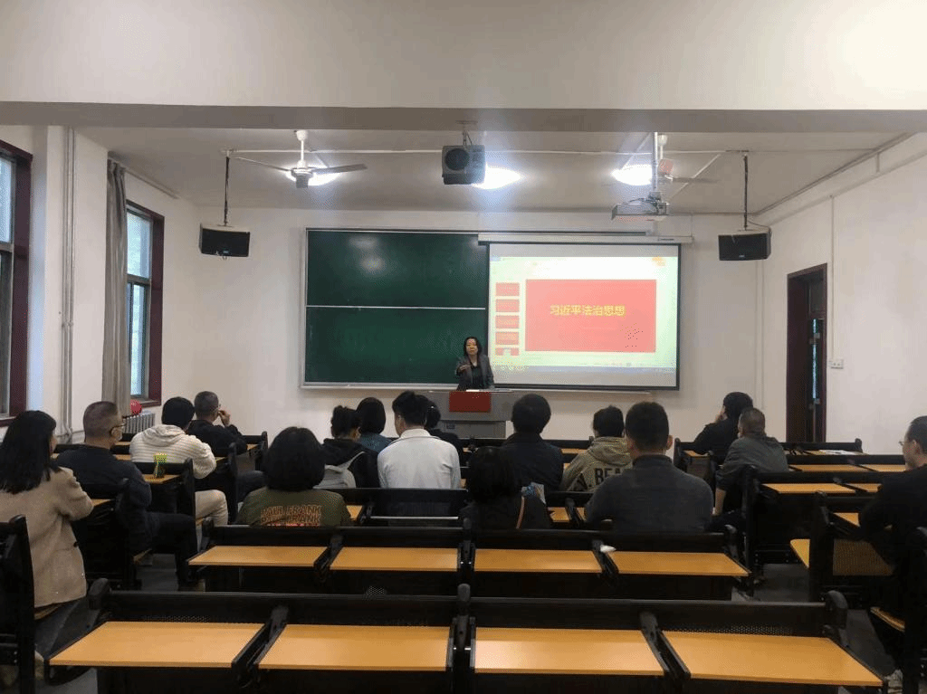 4月14日下午,环境与视觉传达设计党支部在教2-207开展了“深入学习贯彻习近平法治思想”主题党日活动,活动由党支部副书记王彦娜主持。