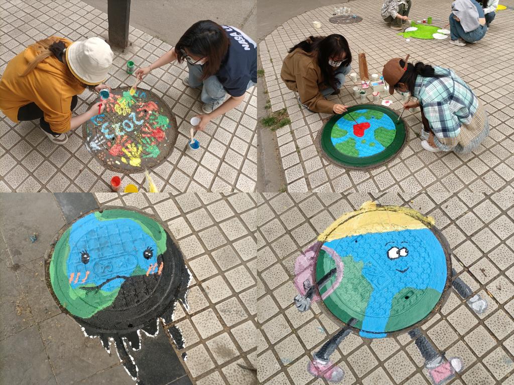 活动中,潘洋澜组织全体支部党员对环保知识以及绿色地球观念进行了学习。随后带领大家积极构思与创作,呼吁增强环保意识、提高环保素养,争做环保卫士。全体参与人员携带工具对校内30个井盖进行了绿色环保教育等内容的绘画涂鸦。大家以井盖为画布,手持画笔与调色盘,一笔一笔认真勾画,积极参与美术创作,不仅创建了绿色环保的校园氛围,同时让同学们对涂鸦活动有了深切的感受,通过自己的创意与设计,让井盖焕然一新,成为美丽校园的点缀。