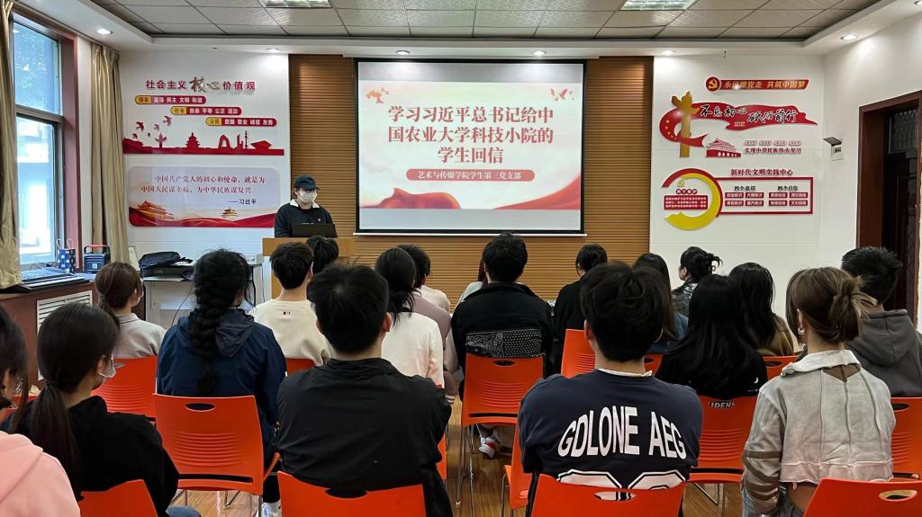 5月4日,艺术与传媒黑料不打烊 学生第三党支部组织开展“习近平总书记给中国农业大学科技小院的学生回信”专题学习会议,支部全体党员参加。