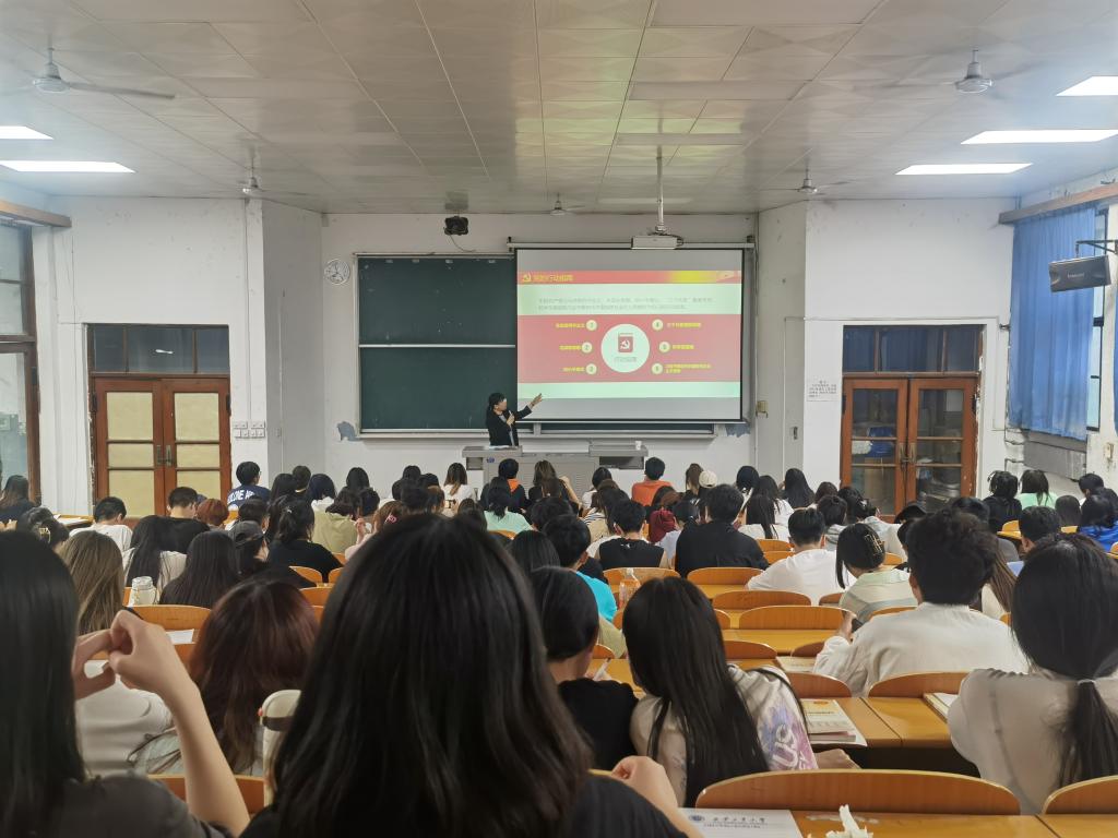 团委书记、学生第三党支部书记、2019级辅导员杨娜娜主讲了“共产党员的条件”。