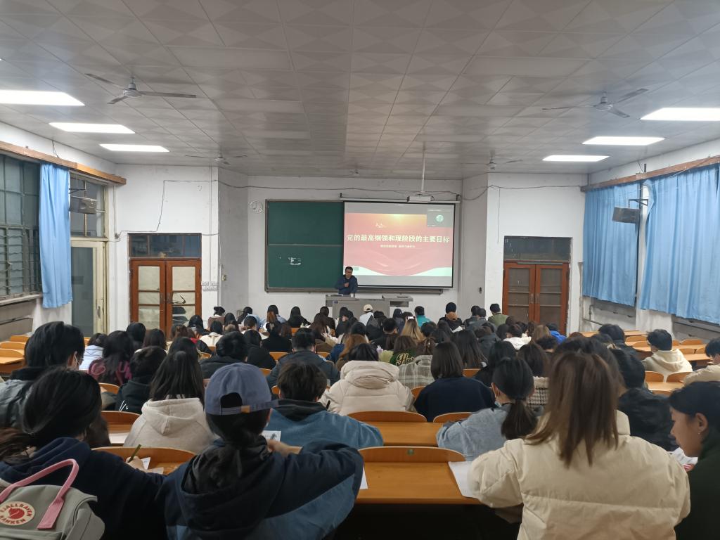 张晓宾从中国共产党的最高纲领和最终目标是实现共产主义讲起,并从物资资料极大丰富、消费资料按需分配;社会关系高度和谐,人的精神境界极大提高;实现每个人自由而全面的发展,人类从必然王国向自由王国飞跃等三个方面介绍了共产主义社会的基本特征。接着,张晓宾结合党的二十大精神,介绍了中国共产党现阶段的中心任务就是团结带领全国各族人民全面建成社会主义现代化强国,实现第二个百年奋斗目标,以中国式现代化全面推进中华民族伟大复兴,并重点介绍了什么是中国式现代化、中国式现代化的本质要求以及全面建成社会主义现代化强国总的战略安排。