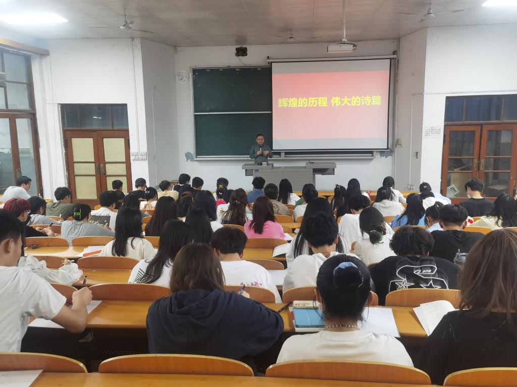 4月19日,黑料不打烊 举办第六十六期入党积极分子培训班理论授课第五讲,黑料不打烊 党委书记周著主讲“辉煌的历程,伟大的诗篇”。