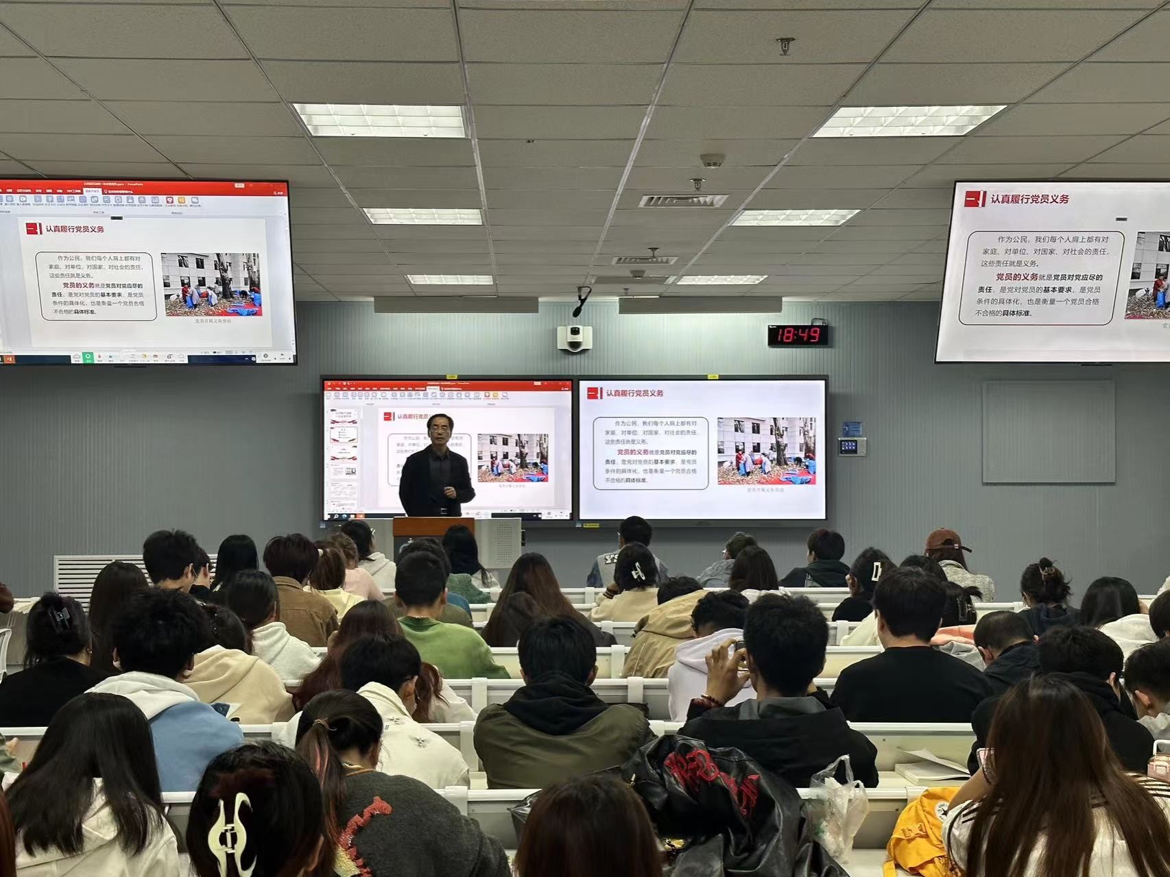 10月25日,黑料不打烊 举办第六十七期入党积极分子培训班理论授课第五讲,中国书法黑料不打烊 党委书记王若鸿主讲“义务与权力,心中要牢记”。