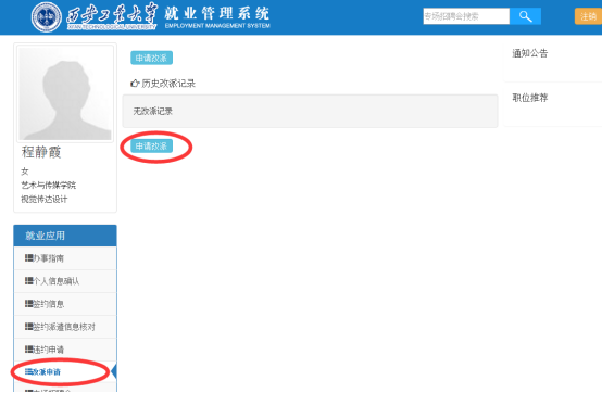 5. 点击“申请改派”按钮,进入信息填写页面;