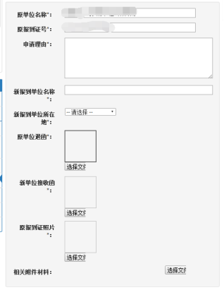 6.填写包括“申请理由”、“新报到单位名称”、“新报到单位所在地”等所有信息,将“原单位退函”、“新单位接收函”、“原报到证照片”材料进行拍照并上传;