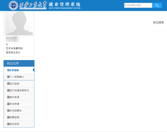 就业信息网(网址://jy.xust.edu.cn/website/index.aspx),点击“往届生”界面;