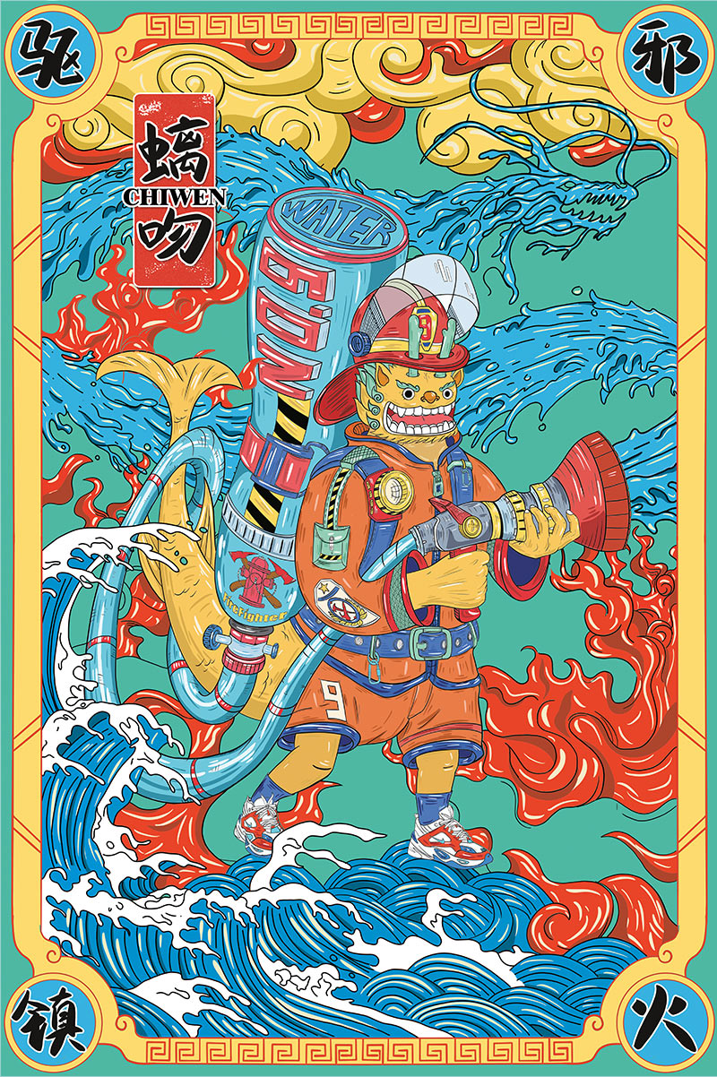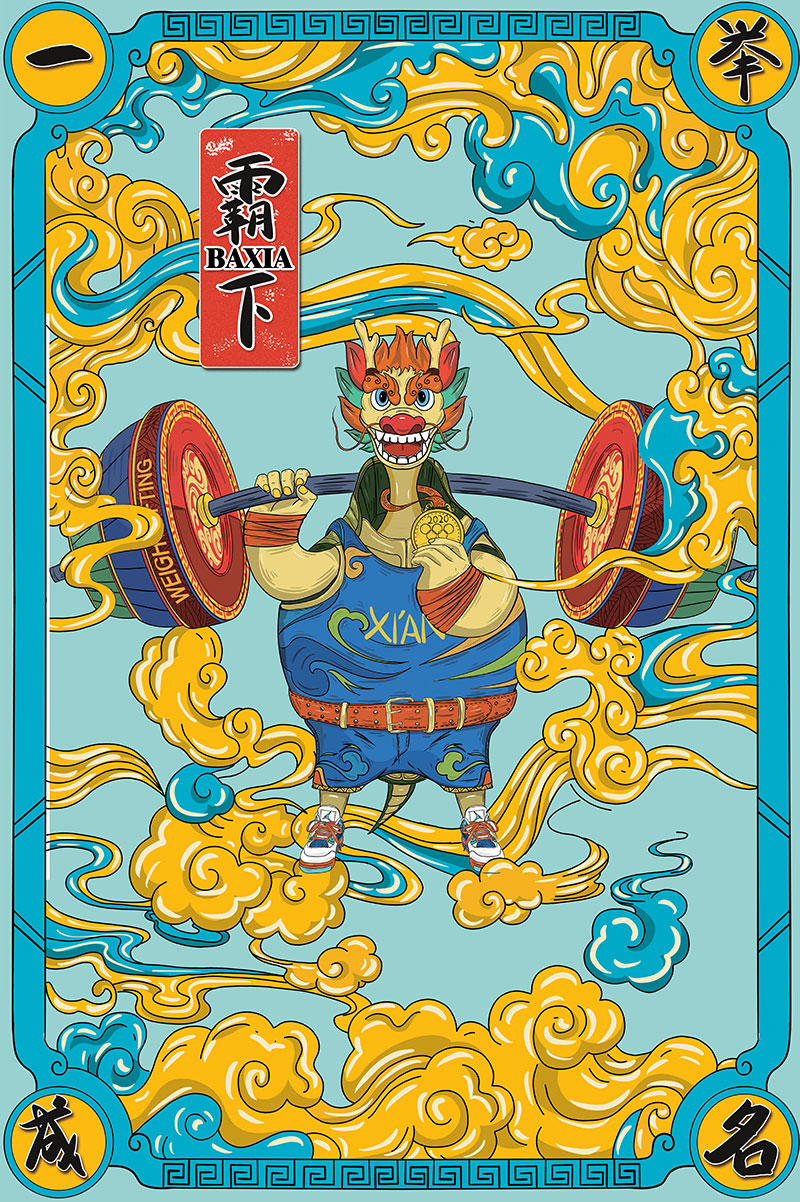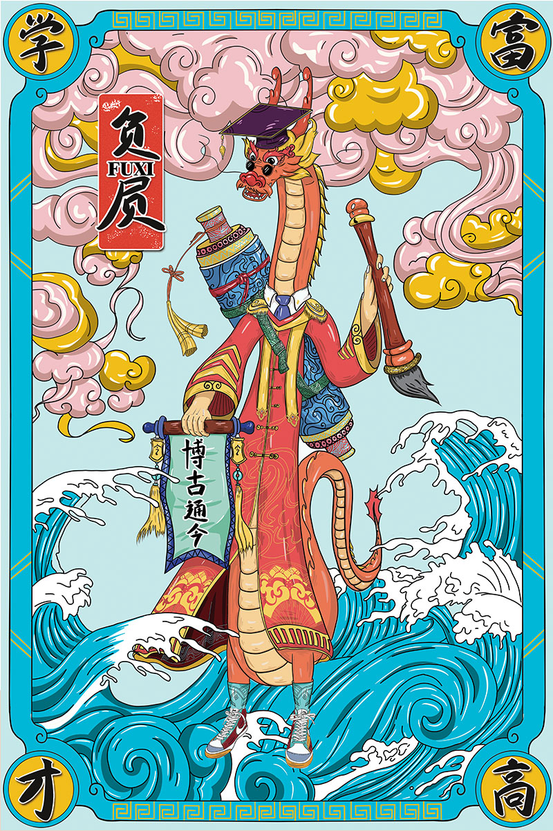 九龙子造型符号具有丰富的传统文化内涵和浓厚的历史价值,将九龙子传统造型语言重新提炼出来,用现代设计眼光去看待它,发掘其中的文化魅力是非常有必要的。在具体的创新设计中,主要从国潮和Q萌两个方向展开。随着国力的不断增强,我国传统文化也在不断输出,“国潮文化”设计也应运而生,并且映射了文化自信的回归和青年群体对本土文化认同的显著提升。同样,九龙子文化是独一无二的,其独特的艺术造型对现代设计也能带来启发。“国潮”风格和“Q萌”卡通形象的创新再设计,可以促使年轻群体对九龙子文化产生深刻的记忆点,并且也符合对九龙子有趣造型语言的解读,更重要的是通过这一载体可将九龙子文化进行更好的传承和保护。