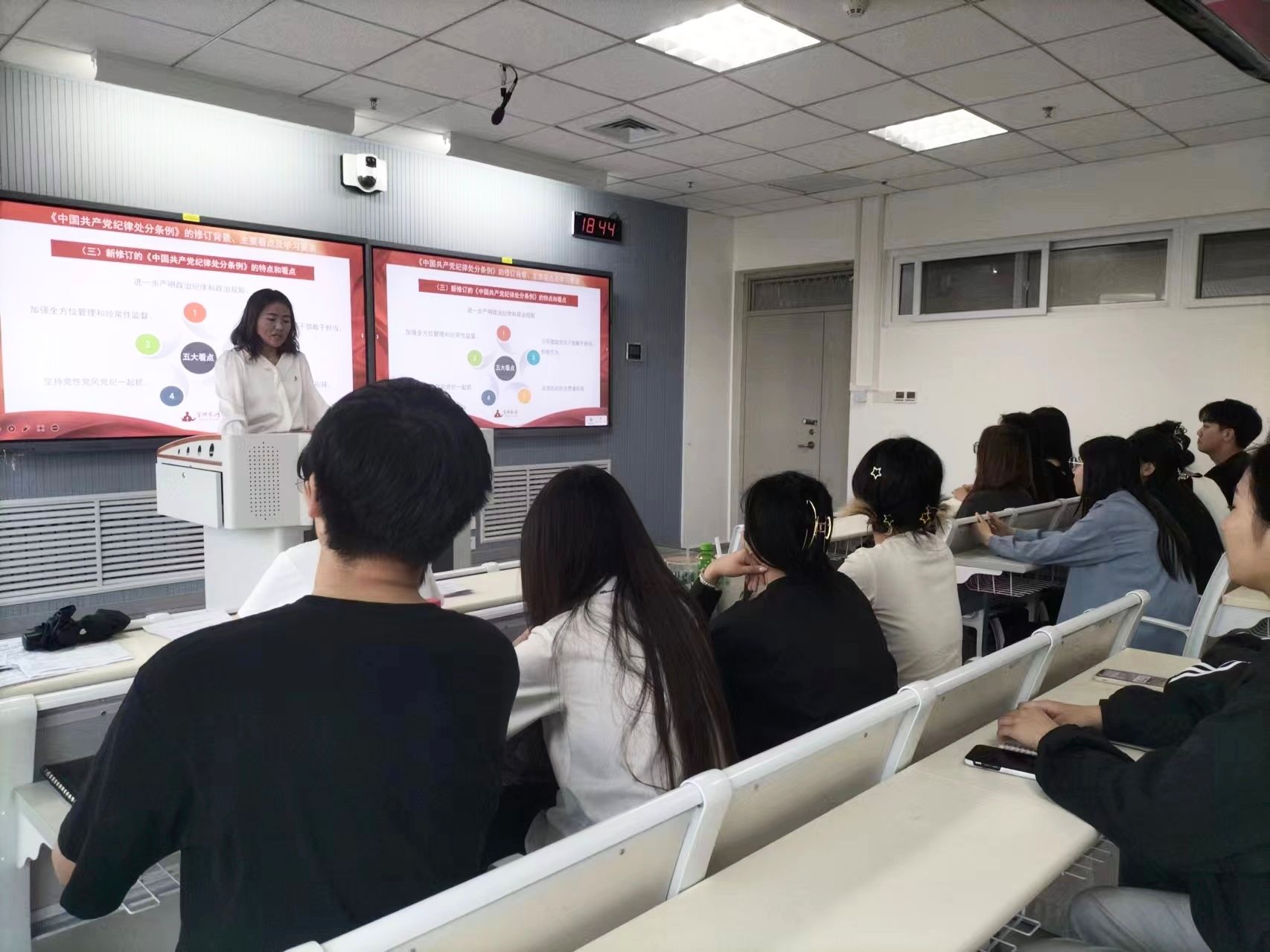 为深入学习《中国共产党纪律处分条例》,严肃党的纪律,5月27日下午,环境设计本科生党支部开展了党纪学习教育主题党课,党课由支部书记董丹丹主讲。